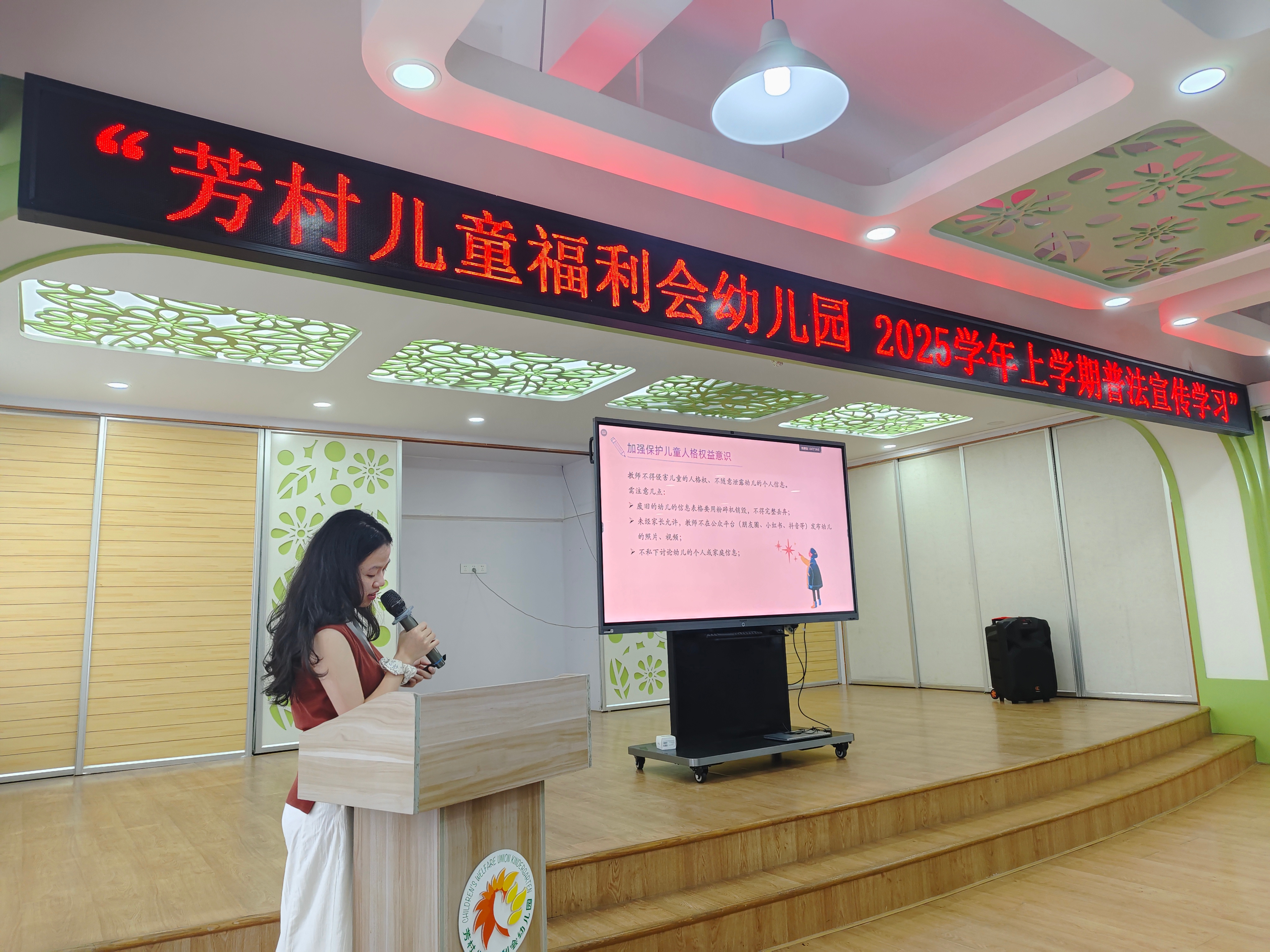 2025年8月26日,广东梵君律师事务所陈晓琳律师受邀前往广州市荔湾区芳村儿童福利会幼儿园,开展《中华人民共和国学前教育法》专题普法讲座。本次活动旨在帮助教职工深入理解新法内容,明确法律红线,提升依法办园、依法从教的意识和能力。