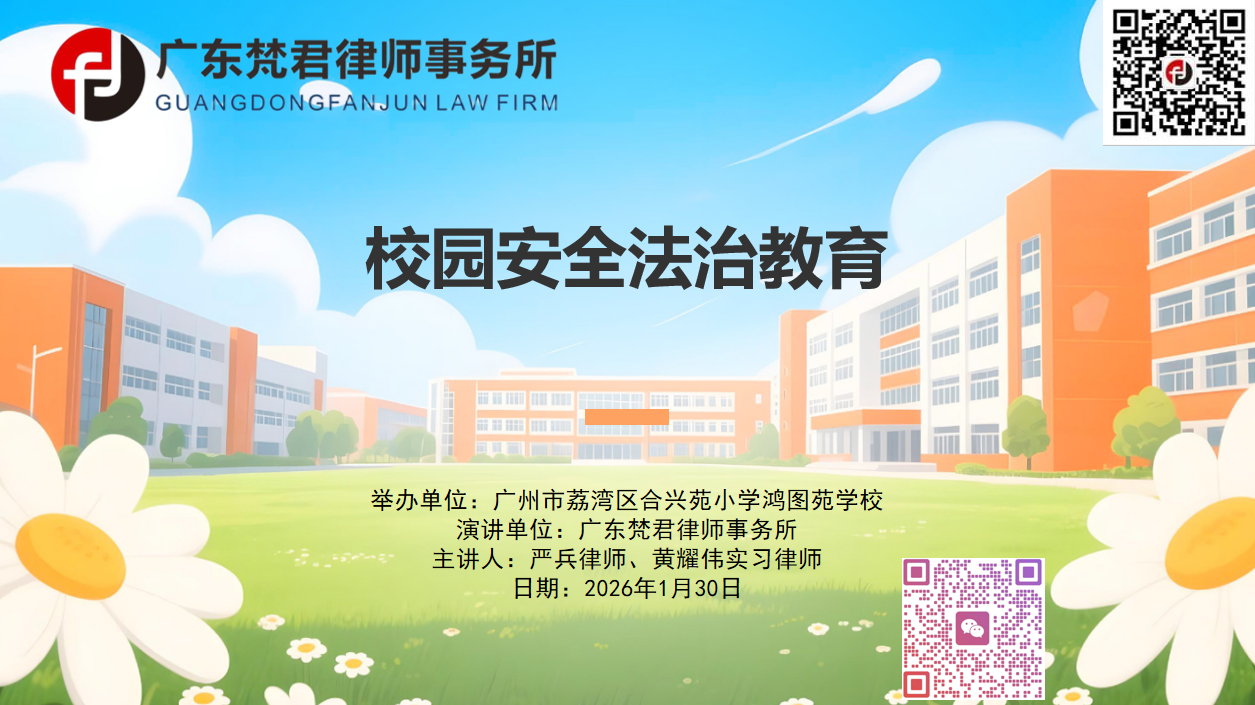 校园安全法治教育|广东梵君律师事务所走进广州市荔湾区合兴苑小学鸿图苑学校