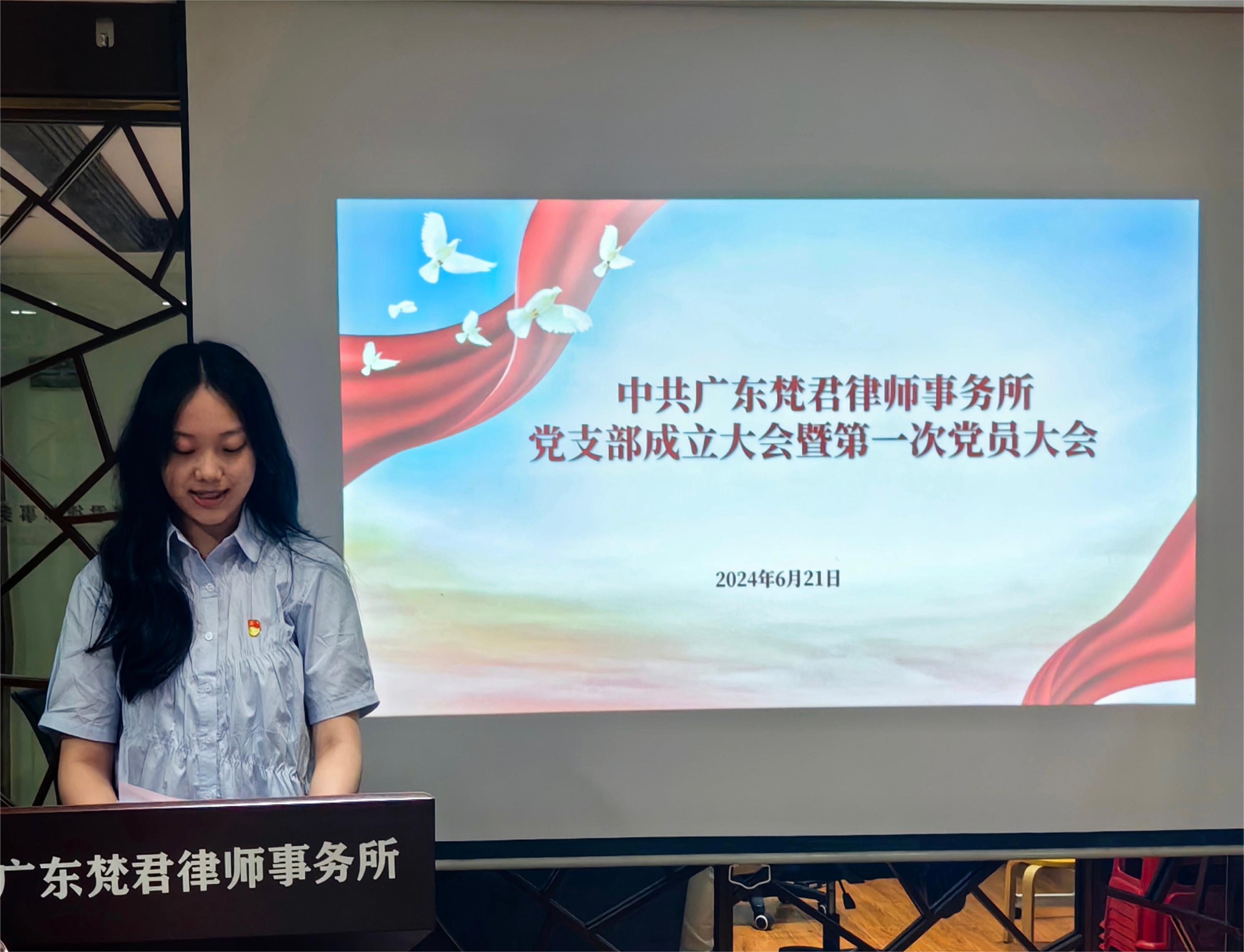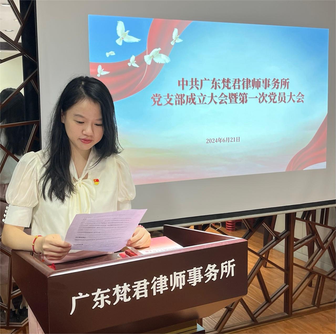 陈晓琳同志向大会报告成立广东梵君律师事务所党支部的筹备情况。